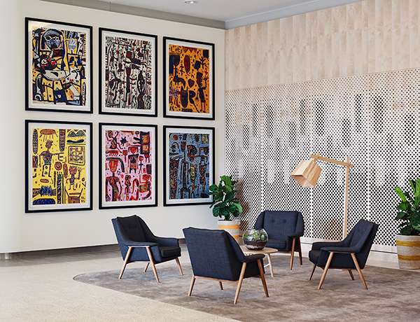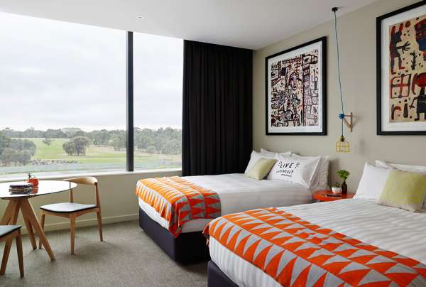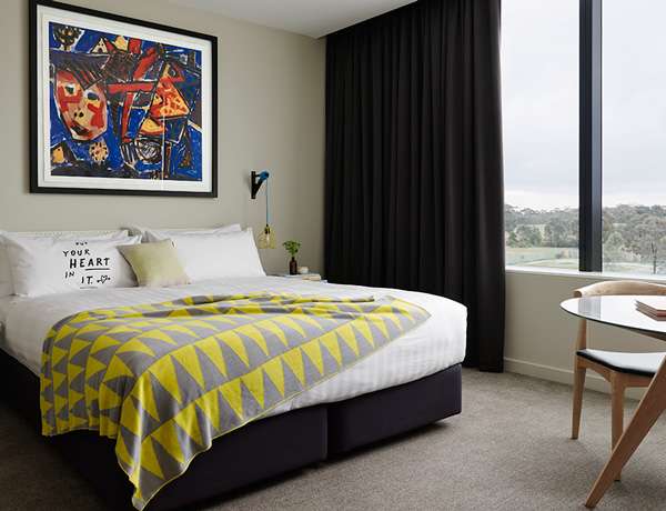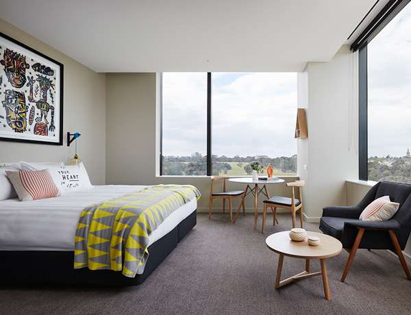 Dedicated to the very lovable Australian artist David Larwill, the boutique hotel draws inspiration from his Studio. With bright, playful Larwill works complementing the contemporary design and incredible views of green parklands and the city, The Larwill Studio is the perfect place for contemplation, creation and inspired thinking.